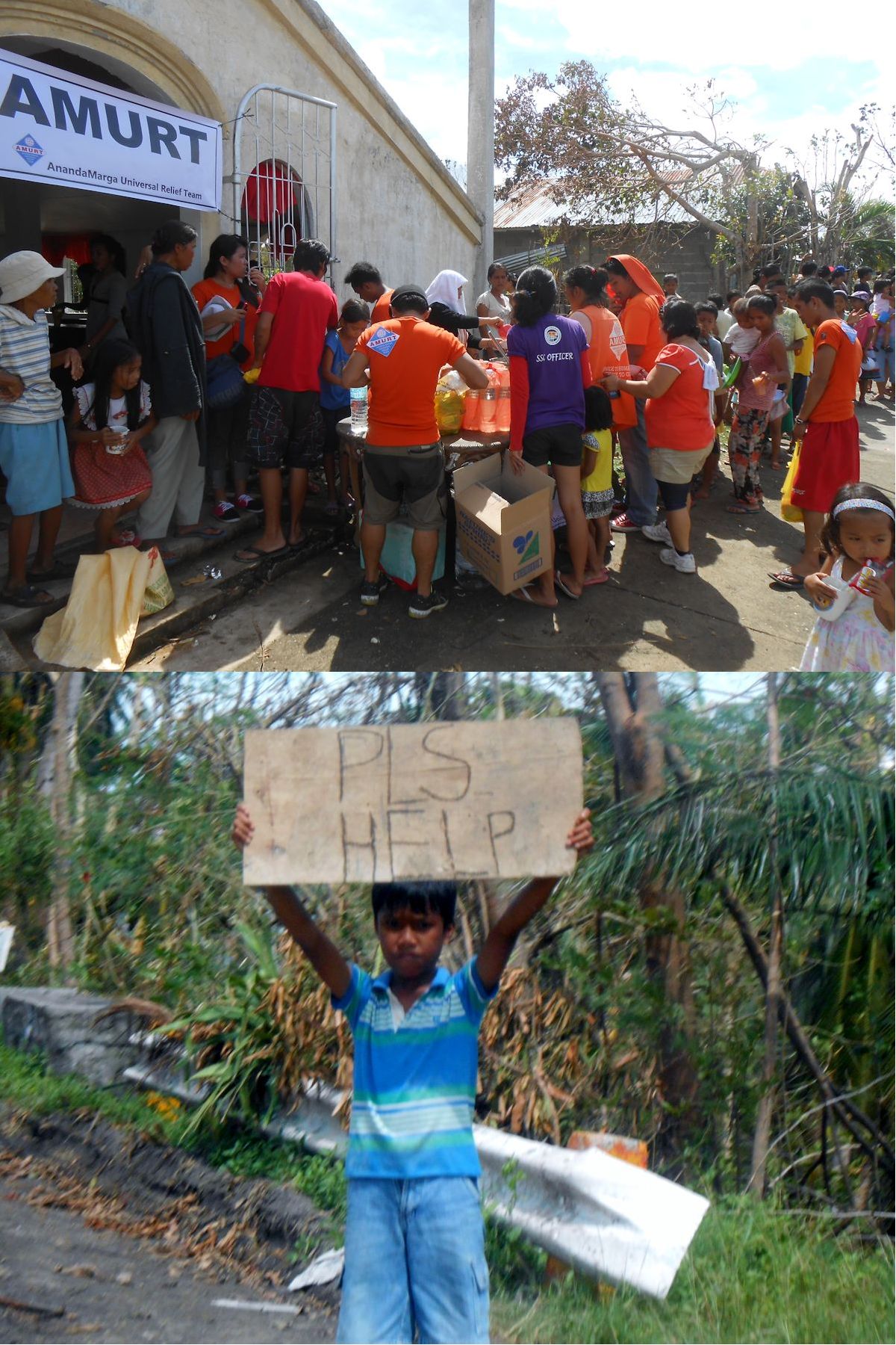 Plea for help and AMURT response at Bogo, Philippines in the wake of Typhoon Haiyan
